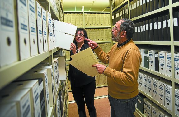 Memoria documental. Sagrario Arrizabalaga y Antonio de las Heras en los pasillos del Archivo. Diario Vasco